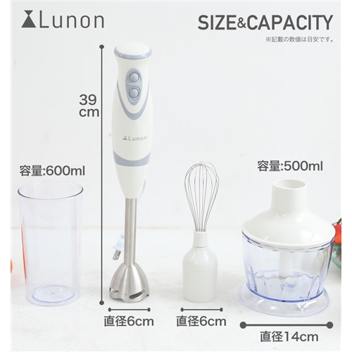 ハンドブレンダー ハンドミキサー Lunon DZ-211 マルチスティック 1台5役 フードプロセッサー ホワイト