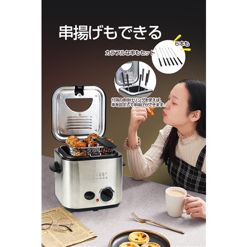 ●付属の串掛けリングを使えば、串を固定して串揚げができます。