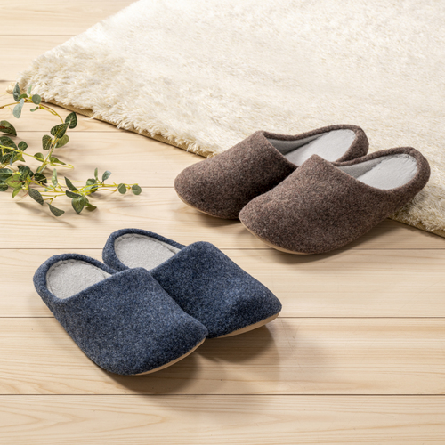 ヤマダオリジナルウール調滑り止め付き洗えるルームシューズ ブルー Lサイズ(サイズの目安:25.0-27.0cm)