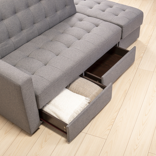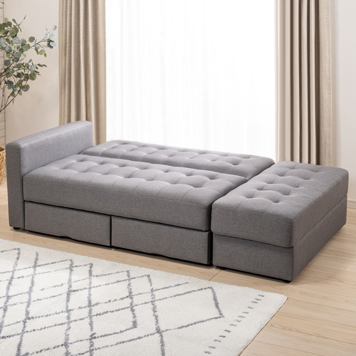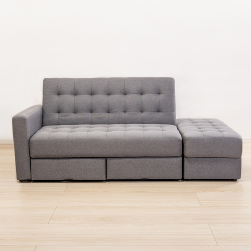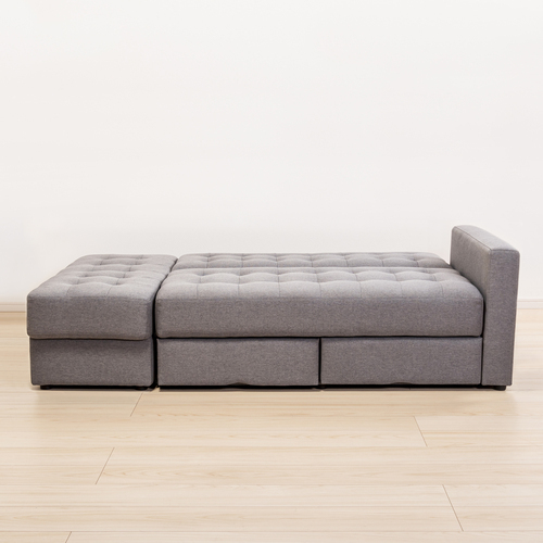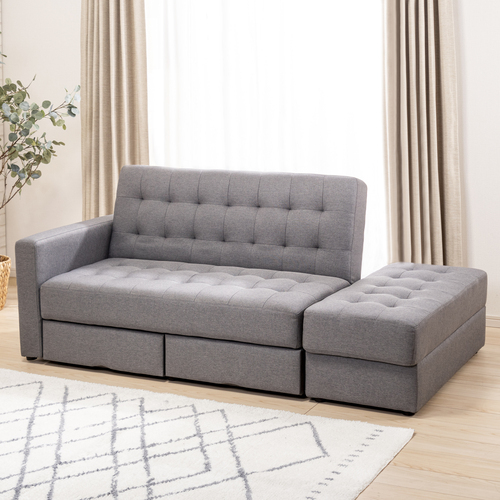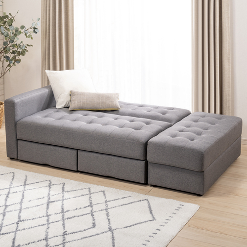 ヤマダオリジナル マルチソファ ニース GY布グレー 2Pソファ  スツール付 収納付き 引出2杯 背もたれリクライニング