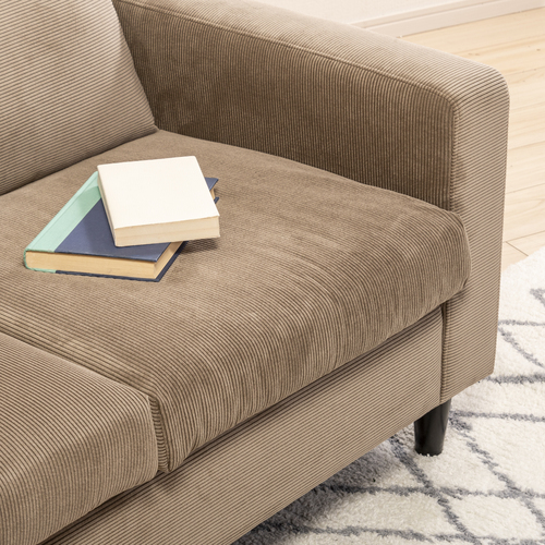 ●,手触り柔らかいコーデュロイ生地のスツール付きソファ