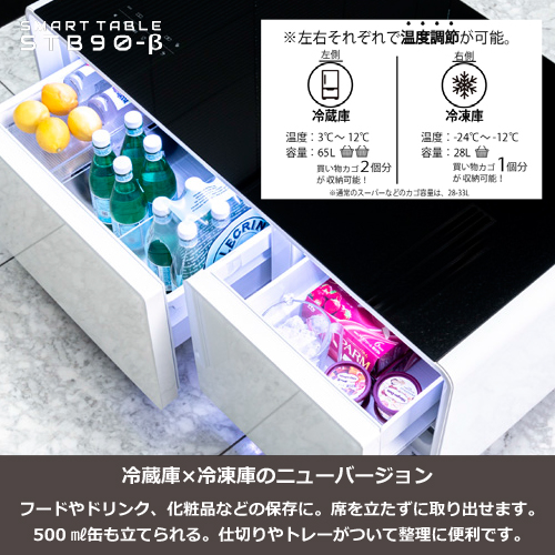 ロイヤル SMART TABLE スマートテーブル LOOZER STB90β WHITE ルーザーSTB90β ホワイト 冷蔵庫&冷凍庫付きテーブル ステルス家電 スピーカー付 USBポート