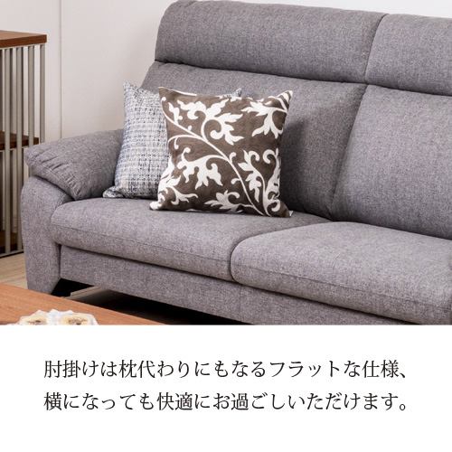●肘掛けは枕代わりにもなるフラットな仕様のため、横になってくつろぐ時も快適にお過ごしいただけます。