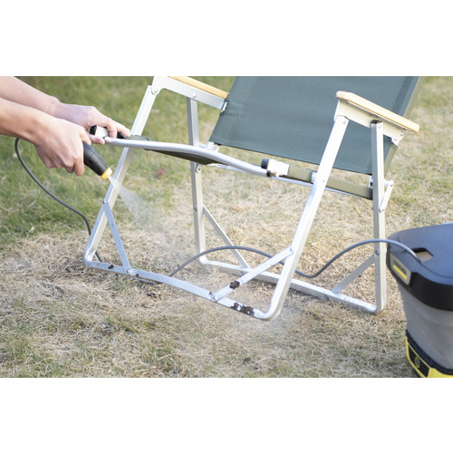 給水タンクは折りたたむことで約10cmの厚さになるので保管場所に困りません。標準装備のトリガーガンや付属品も本体内に収納が可能なので、すっきりと収納できます。