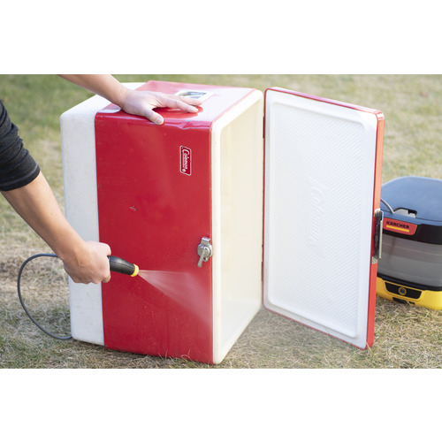 柔らかくして汚れを落としやすくするお湯も使用でき、ビーチや緊急時の簡易シャワーとしても便利です。