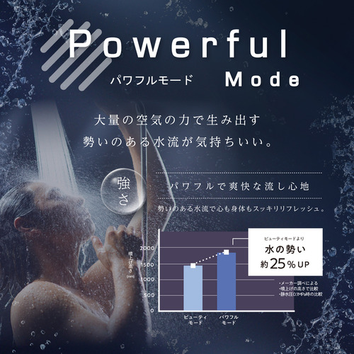 ●勢いある水流で洗い流す爽快感のパワフルモード。
