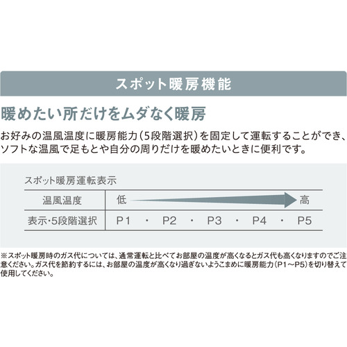 ●暖めたい所だけをムダなく暖房する、スポット機能搭載(5段階) 【仕様】