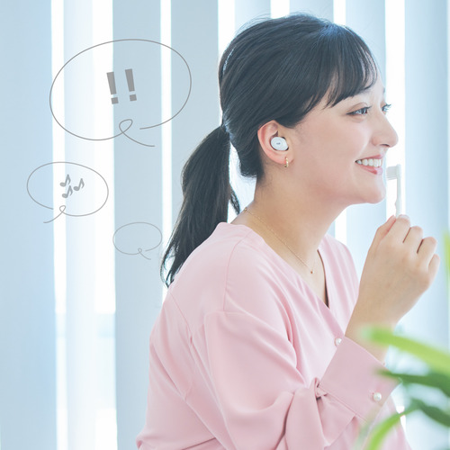 装着時にイヤホンが耳からはみ出さないすっきりとしたデザイン。 髪やマスク、アクセサリーが引っかかりにくいため、シーンを問わずお使いいただけます。外耳道に沿うように設計されたイヤホン形状と、柔らかく変形して密着感のあるイヤーピースが抜群のフィット感を実現。重量は片耳で 4g と非常に軽量なため、長時間装着していても疲れることはありません。