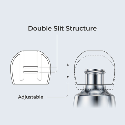 イヤーピースの内壁に、イヤホンのポート先端の突起にフィットするリング状の2段スリットを設けました。イヤホンの装着感に合わせてイヤーピースの固定位置の調節が可能です。