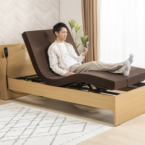 【非課税】[シングル]ヤマダオリジナル 2モーター電動ベッドフレーム「リトン 2F」ナチュラル+ウレタンマットレス「アクシバ2」2点セット