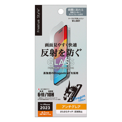 PGA PG-23AGL02AG iPhone15 iPhone15 Pro ガイドフレーム付 液晶保護ガラス Premium Style アンチグレア PG23AGL02AG