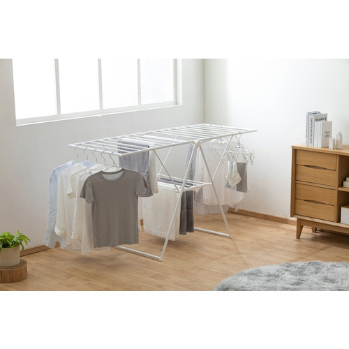 ●スタイリッシュなデザインでインテリアに馴染む室内物干しです。