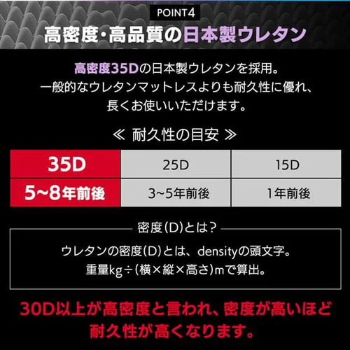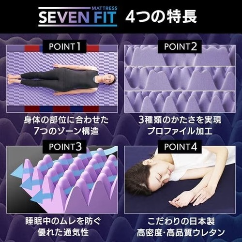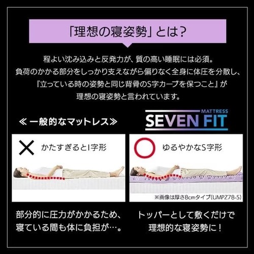 体の部位に合わせたかたさの異なるウレタンウォームを、7つにゾーニングし、睡眠時の理想的な姿勢である立位姿勢を促し、質の良い睡眠をサポートします。