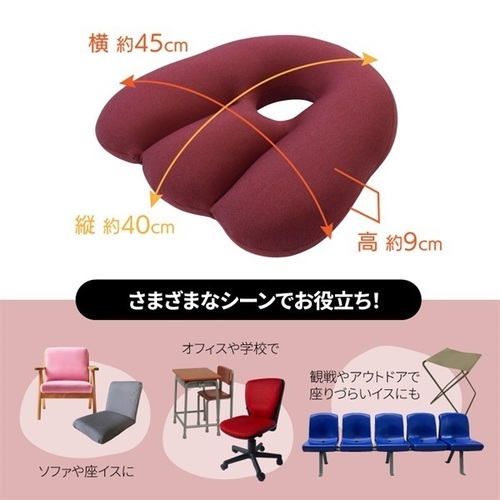 座るとおしりを持ち上げるように穴の後ろ部分がふくらみキレイな姿勢を取りやすくなります。