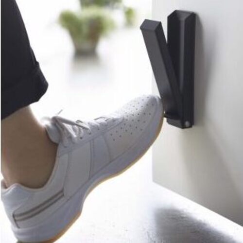スチール製ドアにマグネットで簡単取り付け!片足でサッと押し下げてドアを固定。