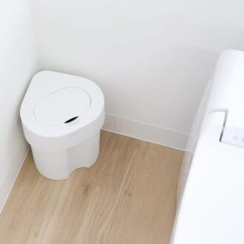 ●深めのフタで簡単にゴミ袋を隠すことができ、手前のくぼみに手をひっかけられるので狭いトイレでも持ち上げやすいデザインです。