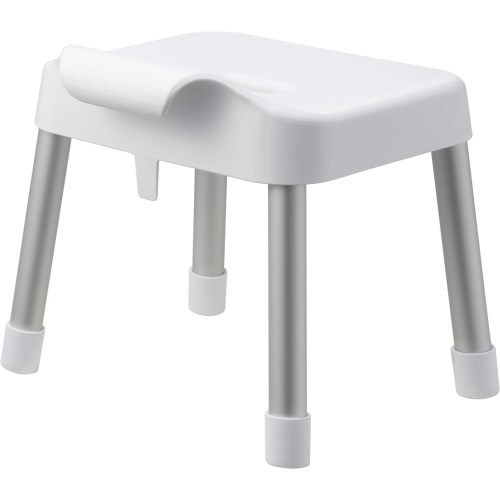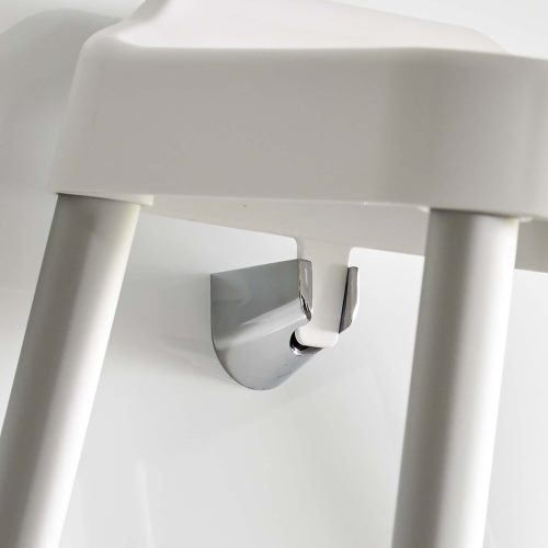 軽くて乾きやすいアルミ脚。シャワーフックにも掛けられるプレート付き。