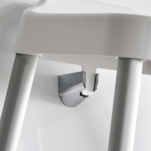 軽くて乾きやすいアルミ脚。シャワーフックにも掛けられるプレート付き。