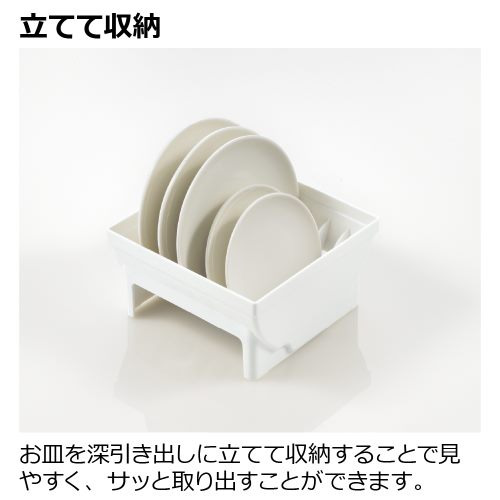 立てて収納:お皿を深引き出しに立てて収納することで見やすく、サッと取り出すことができます。