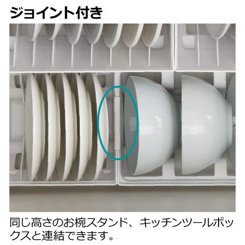 ジョイント付き:同じ高さのお椀スタンド、キッチンツールボックスと連結できます。