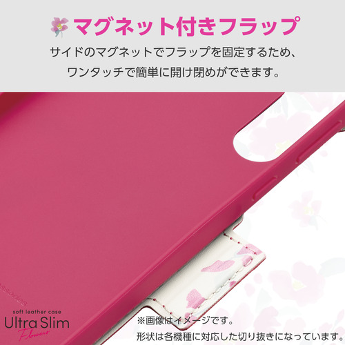 エレコム PM-S243PLFUJPND BASIO active2/シンプルスマホ7 ソフトレザーケース 薄型 磁石付 フラワーズ
