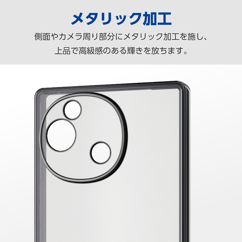●側面やカメラ周り部分にメタリック加工を施した、上品な輝きを放つ高級感のあるソフトケースです。