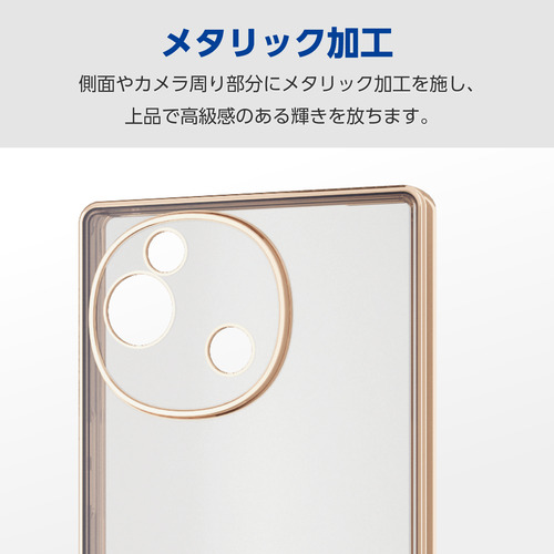 ●側面やカメラ周り部分にメタリック加工を施した、上品な輝きを放つ高級感のあるソフトケースです。