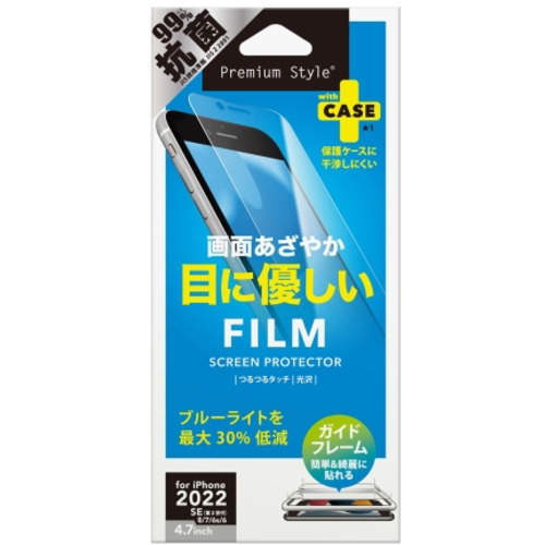 PGA PG-22MBL01 2022年 iPhone 4.7inch用 ガイドフレーム付 液晶保護フィルム Premium Style ブルーライト低減/光沢