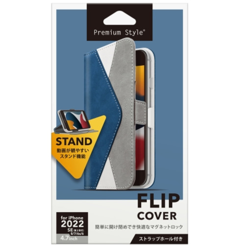 PGA PG-22MFP06BL 2022年 iPhone 4.7inch用 フリップカバー Premium Style ブルー