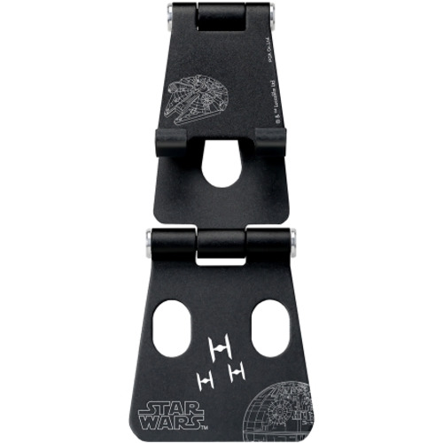 「STAR WARS」デザインの重厚感のあるアルミ素材で持ち運びにも便利な折りたたみタイプのスマートフォン用 スタンド です。