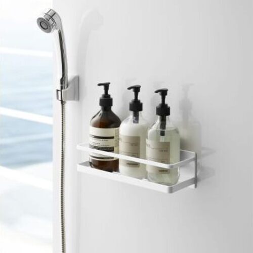 ディスペンサーボトルの追加棚として便利。石鹸・歯ブラシ・タンブラーなどの収納にも。
