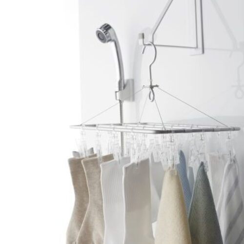 ●マグネットが付く浴室壁面に簡単取り付けの物干しハンガー。干し場所に困る洗濯物に便利!