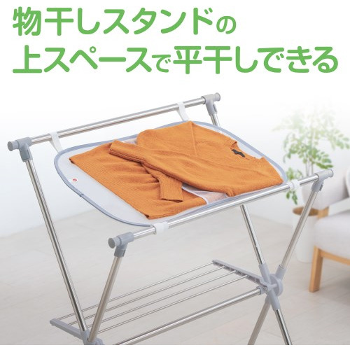 ●市販の物干しスタンドの上部デッドスペースを活用して平干しができます。