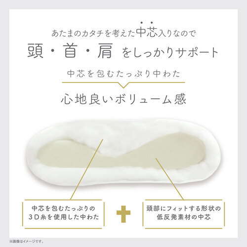 ●あたまのカタチを考えた中芯入りなので、頭・首・肩をしっかりサポート。心地よいボリューム感。