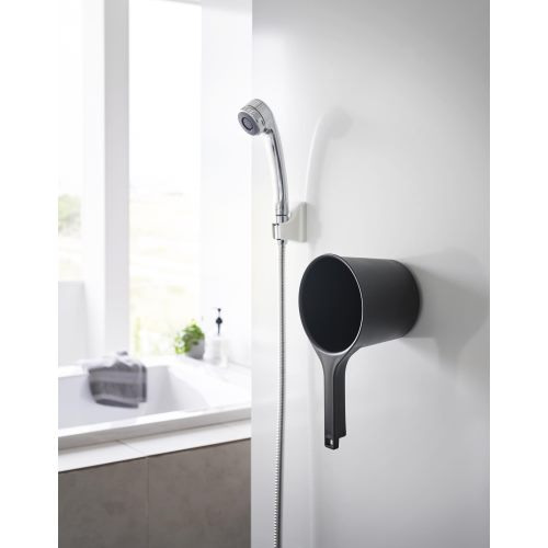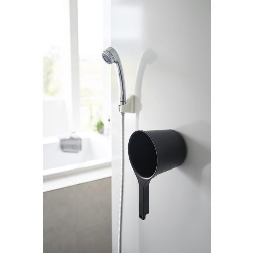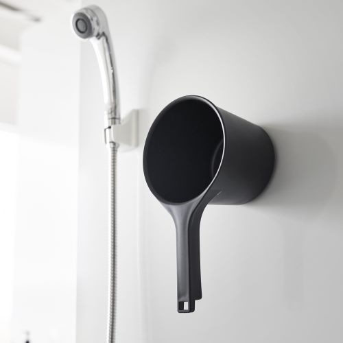●マグネットで浴室壁面に浮かせて収納できる手おけ。