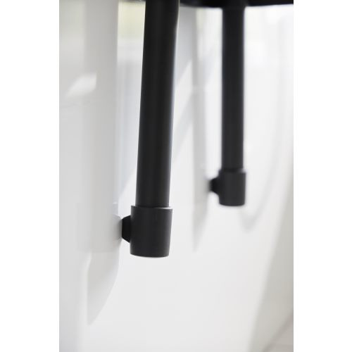 浮かせているので床のお掃除もスムーズ。軽くて錆びにくいアルミ製の脚。