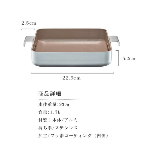 材質:本体:アルミニウム、持ち手:ステンレス、加工:フッ素コーティング(内側)※PFOA、PFOSフリー