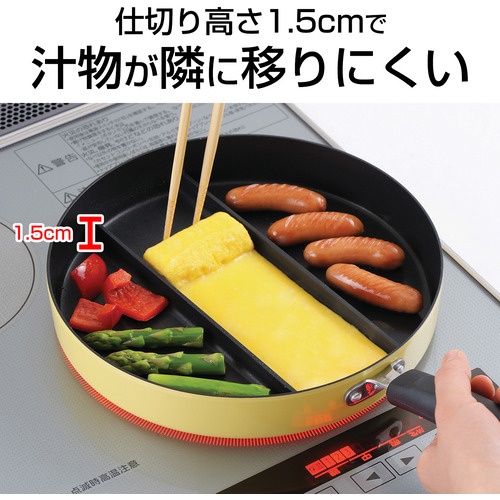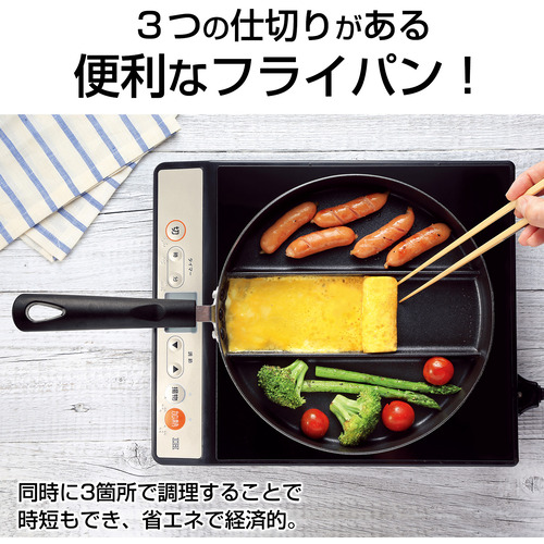 ●焼き場所が3つあるフライパン
