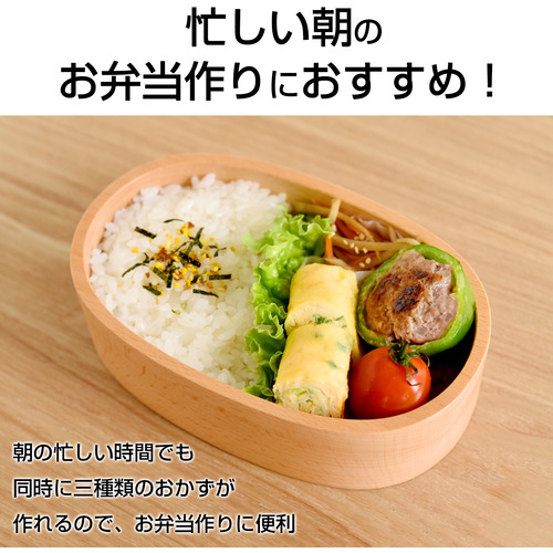 3種類の調理が同時にできる。焦げつきにくいフッ素樹脂加工