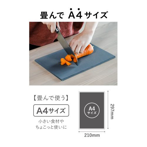 ●自立するので洗った後も場所を選ばず乾かせる、「立てて乾かせる畳めるまな板」。雑菌の繁殖を抑制する抗菌仕様で衛生的。