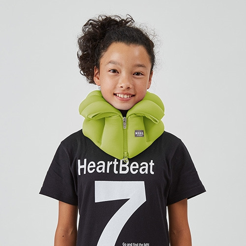 ダブルファスナーで高さとサイズを調整できる!小さいお子様にはチャックを閉めて、大人の方にはチャックを開けて使用することで、首の高さや幅を自在に調整できるので、子どもから大人までご利用できます。