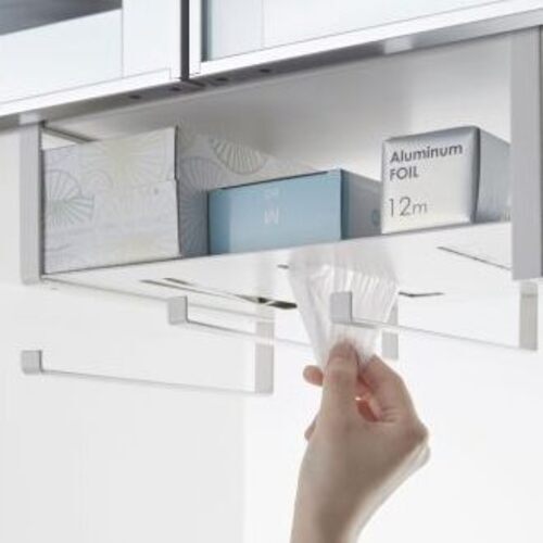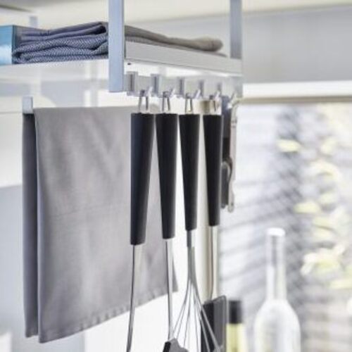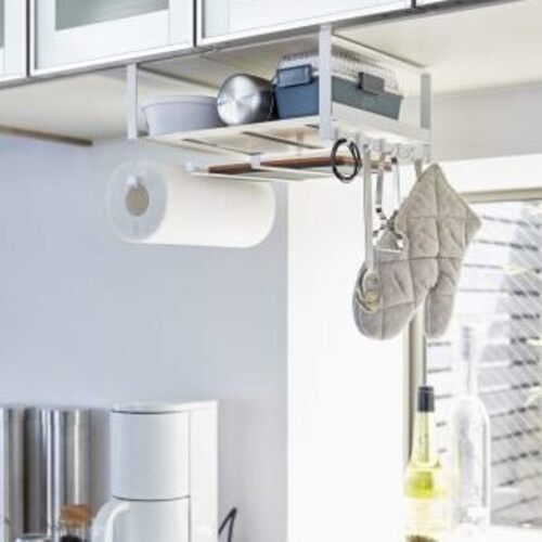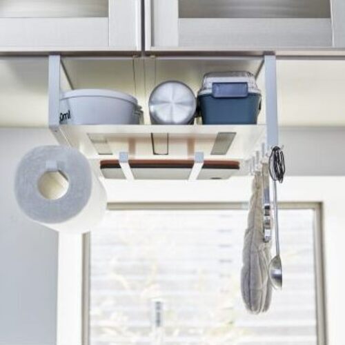 ●キッチンの吊り戸棚に差し込むだけの収納ラック。