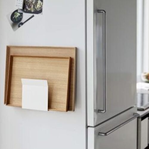 キッチンボードなどにそのまま置いてトレーやオーブン天板の収納に。