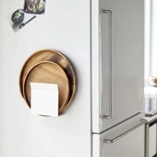 冷蔵庫横が置き場に困るトレーの収納スペースに!