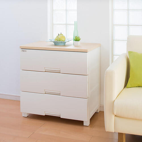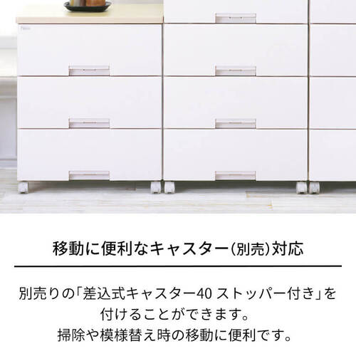 素材:本体・引出し・ロック、ローラー:ポリプロピレン 脚:ポリプロピレン・ポリエチレン(すべり止め) 前パネル:スチロール樹脂 天板:MDF化粧板