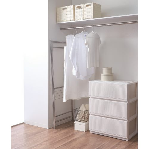 ●ロング丈もしっかり掛けられる、シンプルながらもスタイリッシュなデザインの物干し。