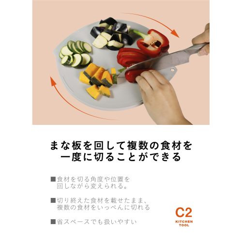 シービージャパン 複数の食材が切りやすい抗菌丸型まな板 ベージュ