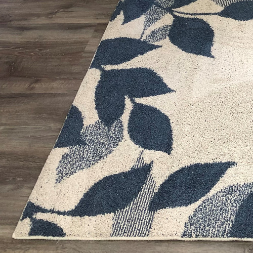 [200X250]スミノエ モダンリーフ柄ラグ シャルム ブルー