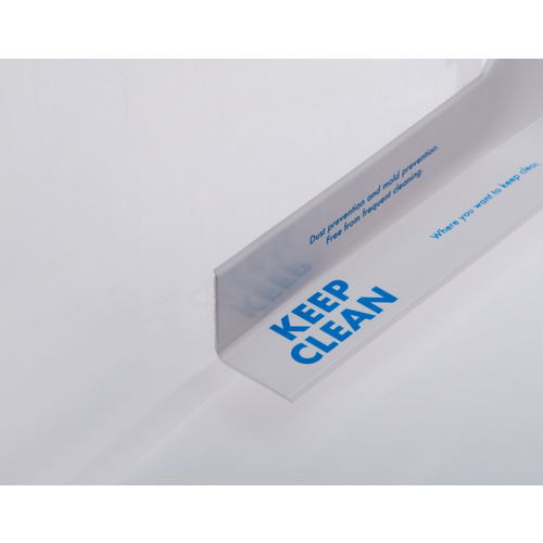 ●L字型に折り目の付いたPVC素材で取扱いカンタン、軽い汚れは拭き取り可能で、頑固な汚れがついたらはがして捨てるだけ
