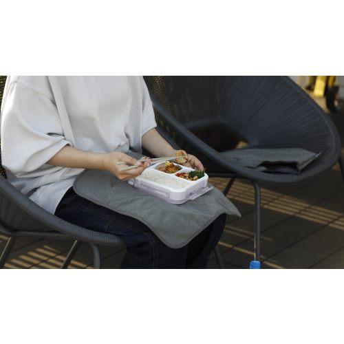 フードマンはそんなバッグにもすっきり入れられる「立てて運べる薄型弁当箱」。